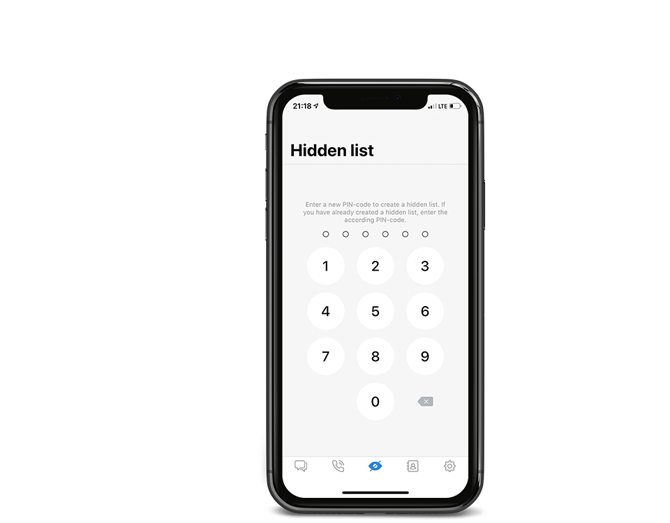 Hide your contacts from people who have access to your phone. Mute contacts in hidden lists, so you won’t receive notifications or calls from them. Unlock hidden list to chat.